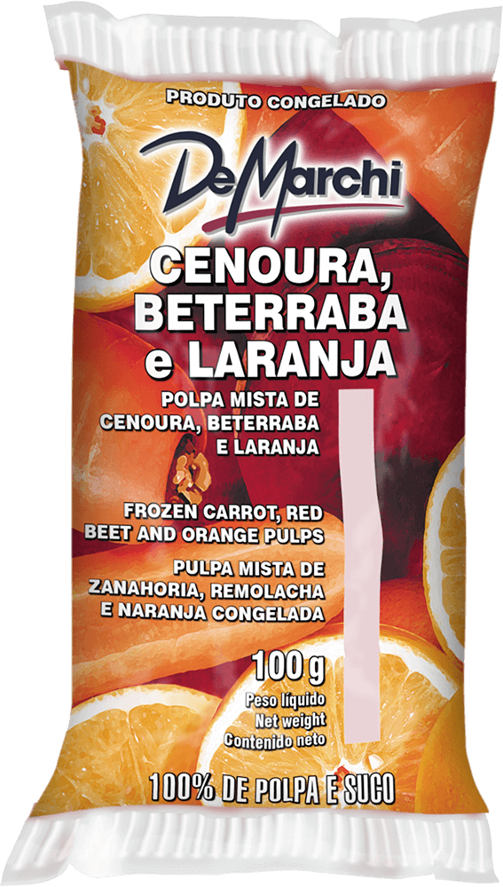 Sumo de laranja, polpa de beterraba e polpa de cenoura.
